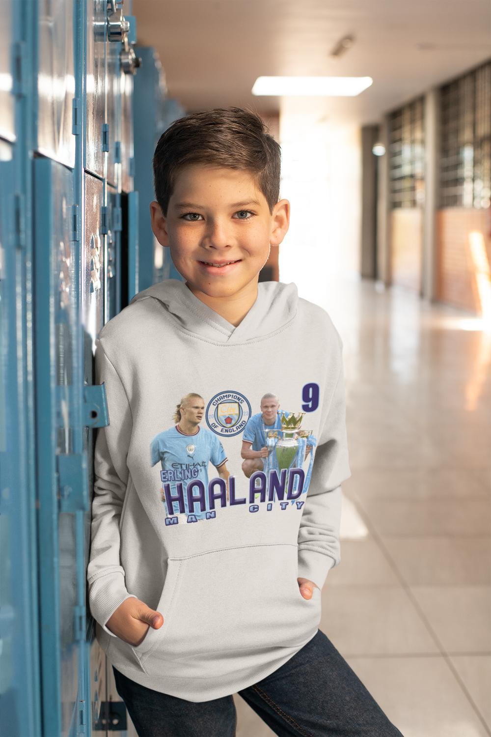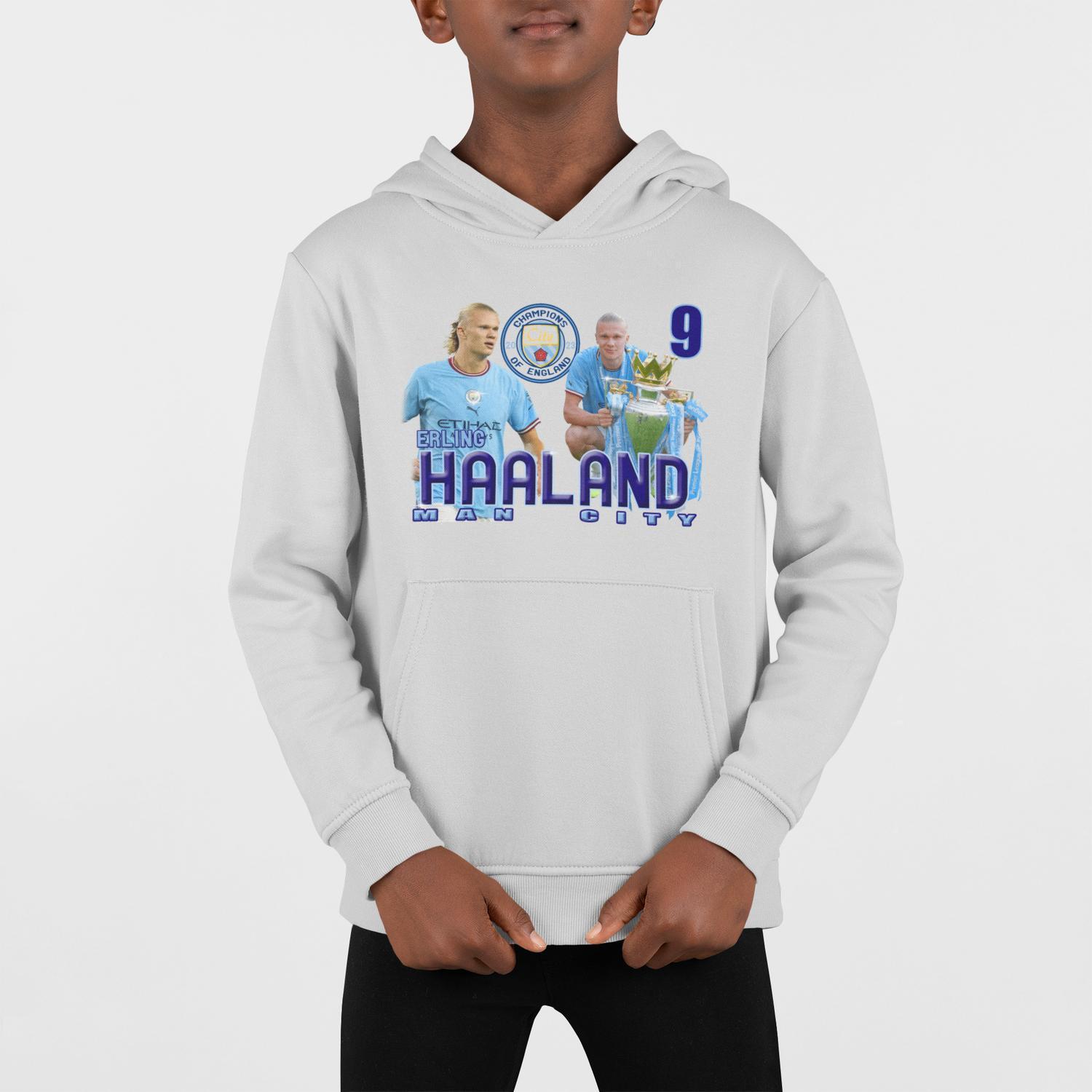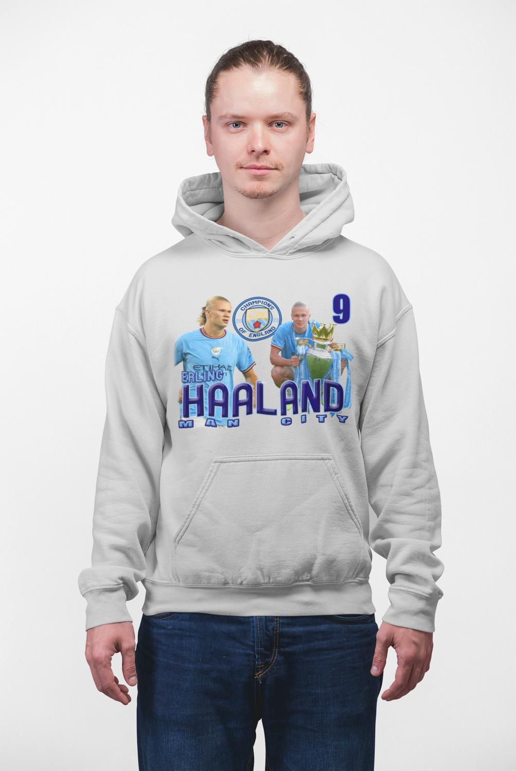 Man. City spelare Erling Haaland Champions - grå huvtröja