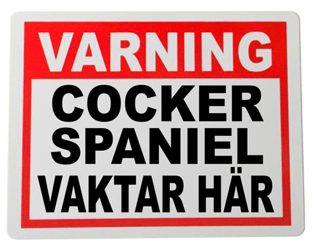 Metall varning plåtskylt - Varning ! Cocker spaniel vaktar här