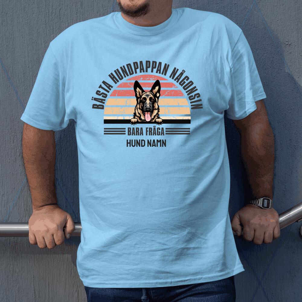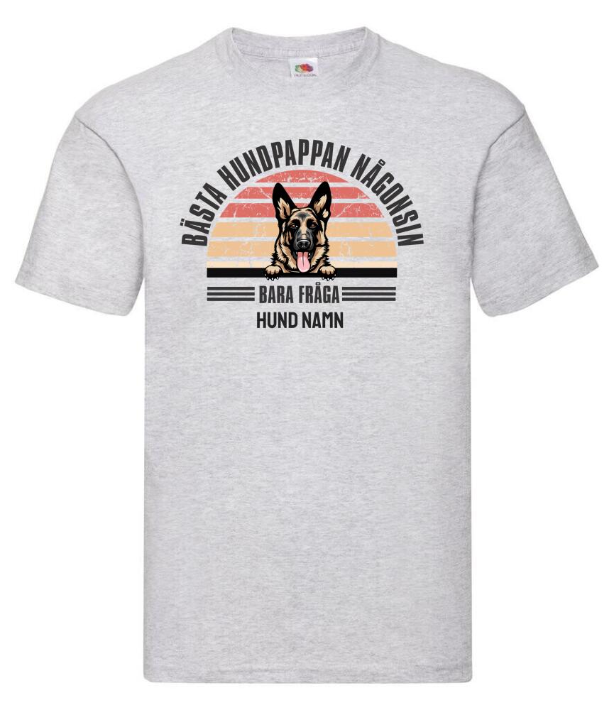 Personlig hund t-shirt med Bästa hundpappa välj hundras och eget namntryck