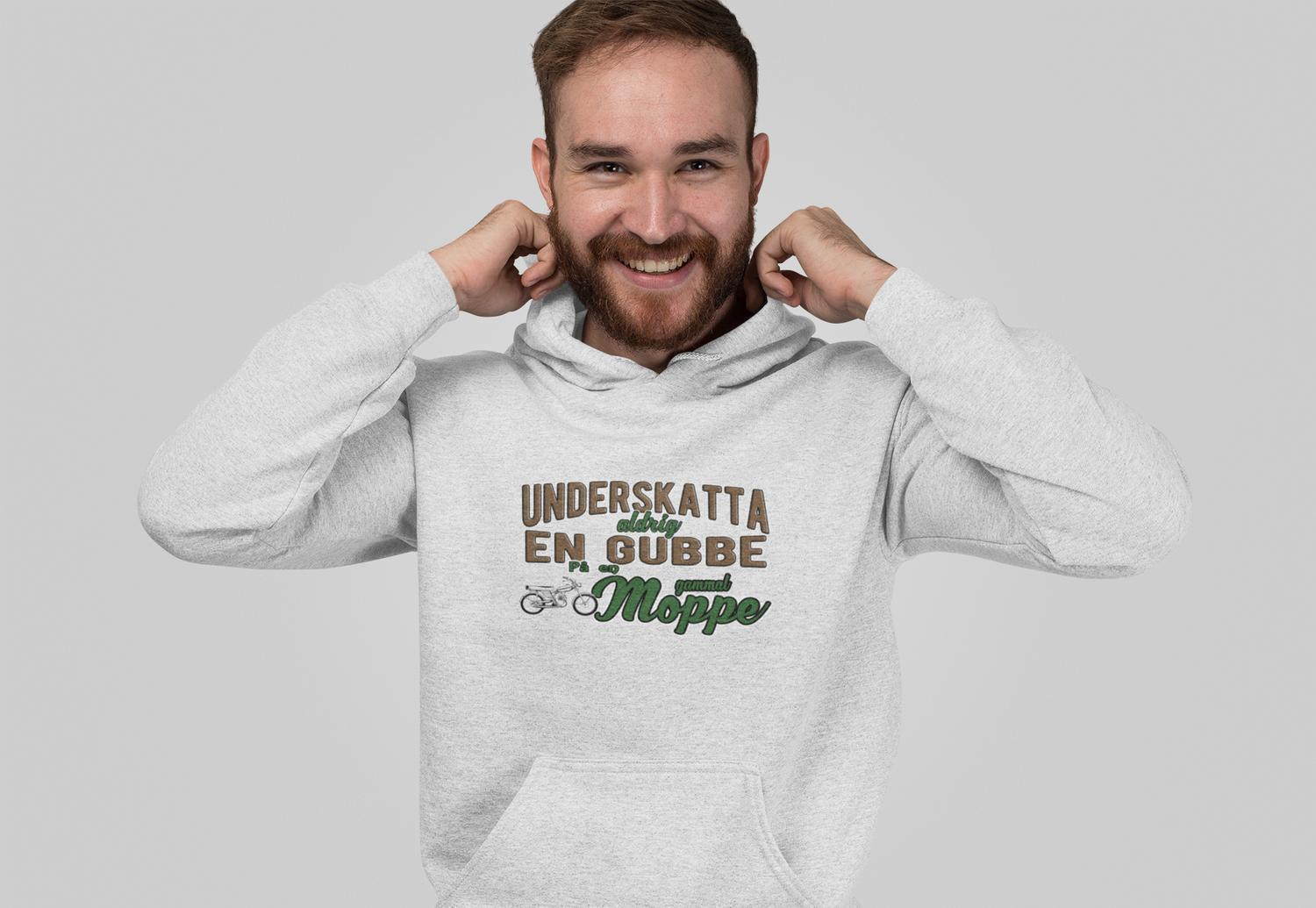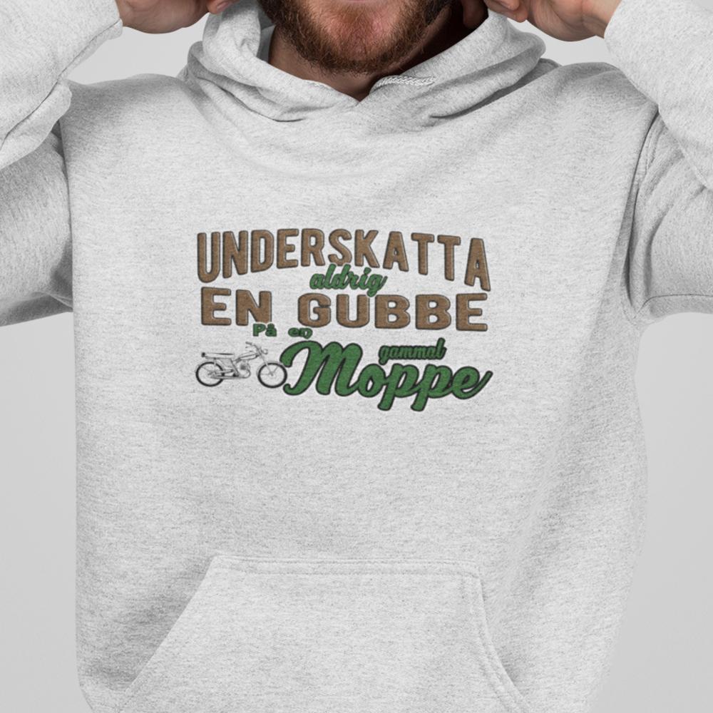 Underskatta aldrig en gubbe på en gammal moppe - grå huvtröja