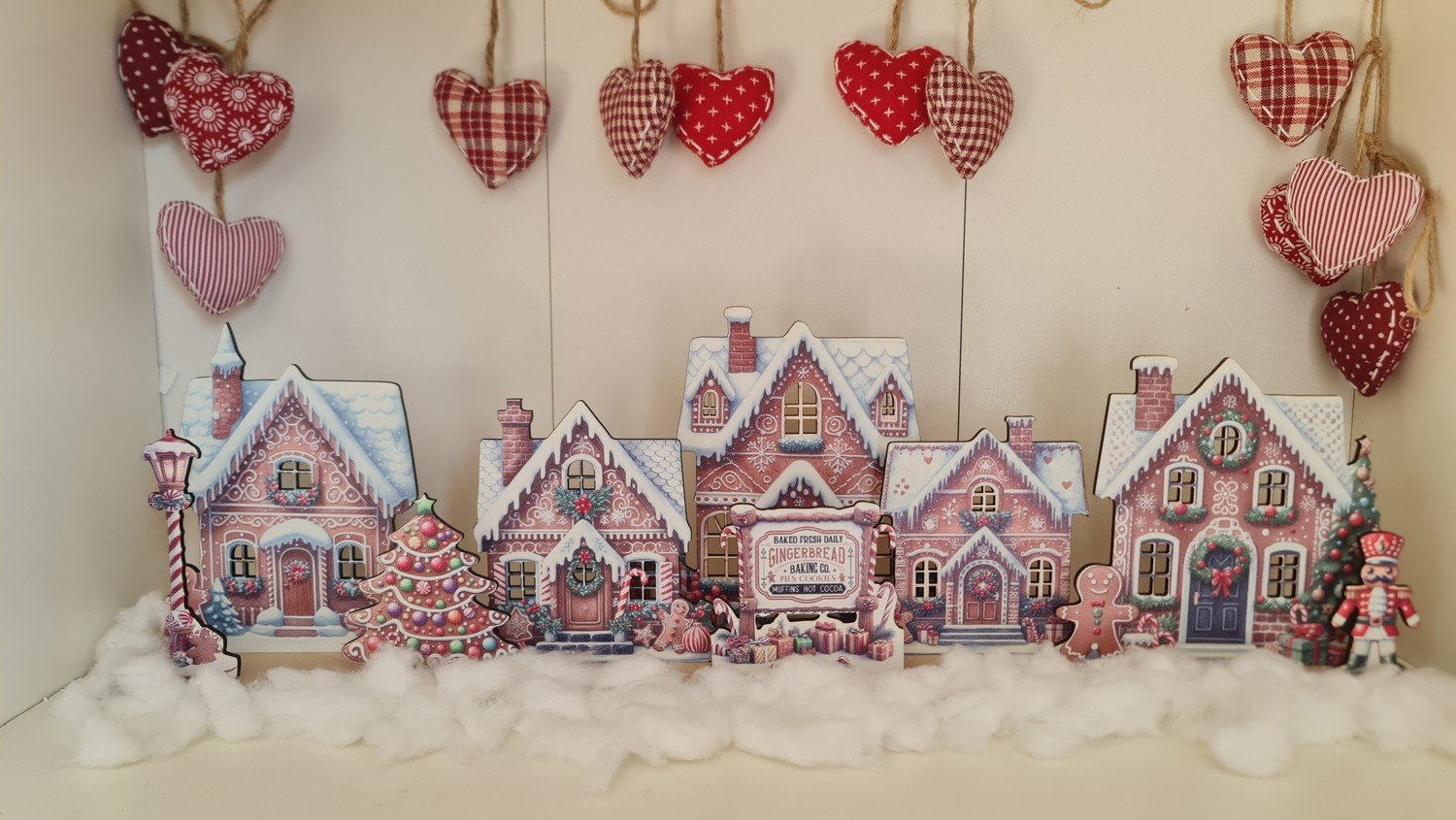 Tillverkad av förstklassig plywood och MDF, denna livliga byscen mäter 52 cm bred och är 17 cm hög, vilket gör den idealisk för visning på en hylla eller fönsterbräda. De utskurna fönstren gör att du kan placera LED-ljus bakom scenen, vilket ger ett varmt, mysigt sken som väcker pepparkaksbyn till liv.