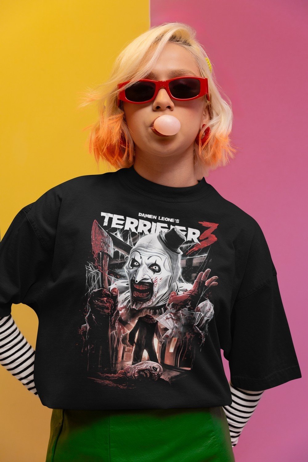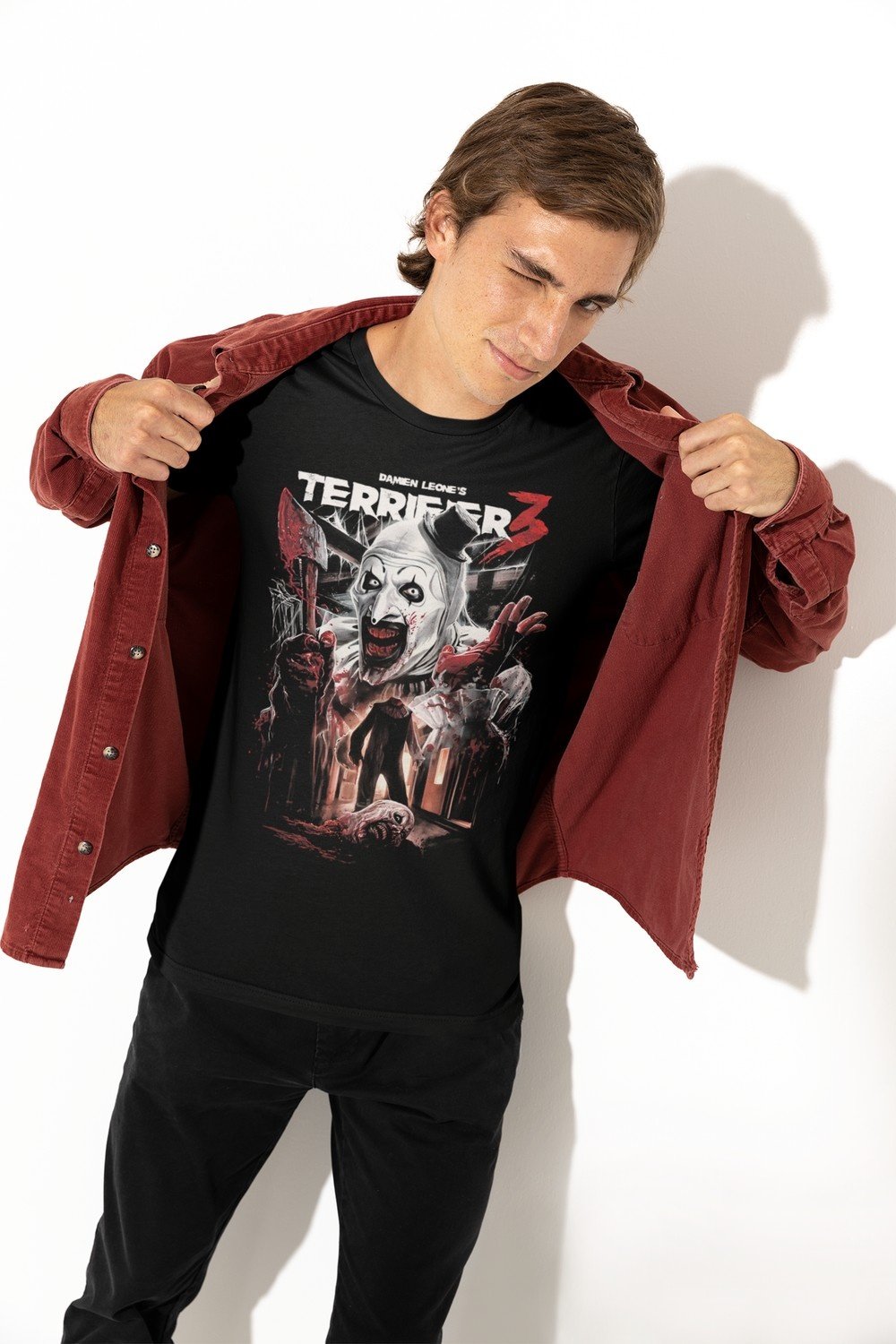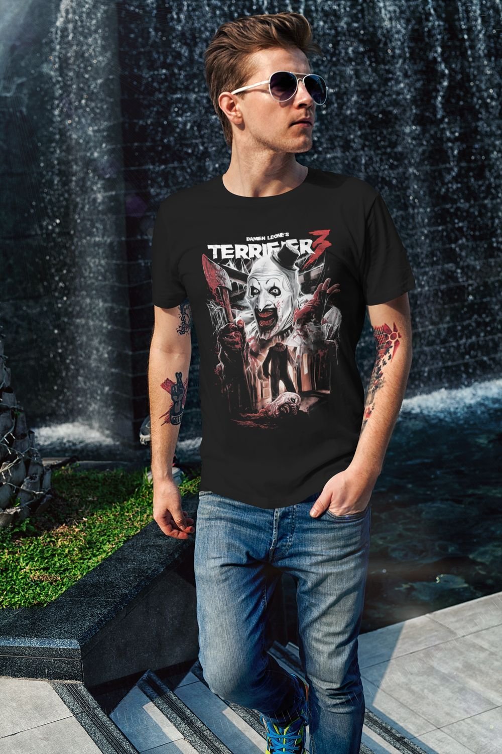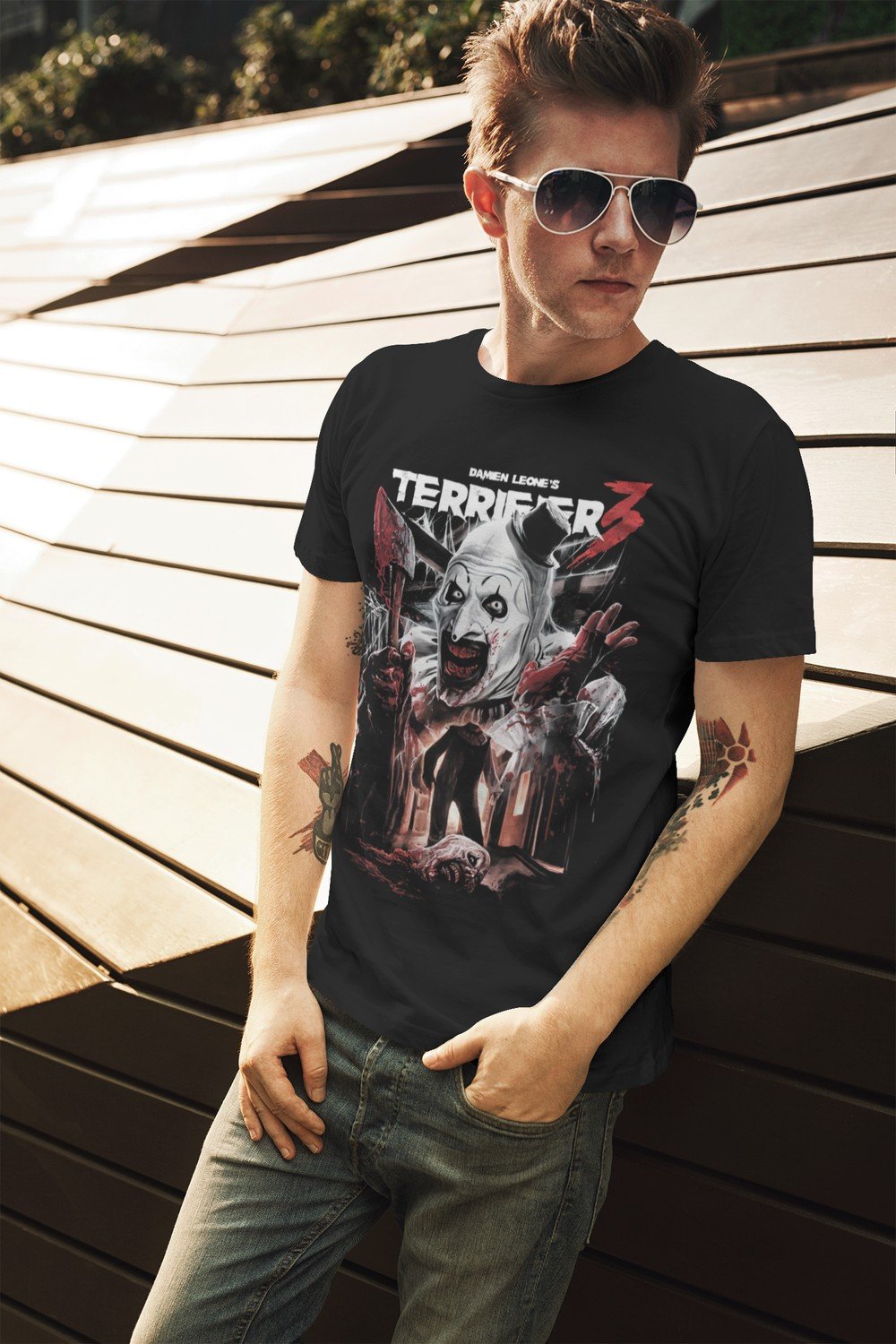 Terrifier 3 herr T-shirt 100% bomull svart t-shirt skräckfilm t-shirt