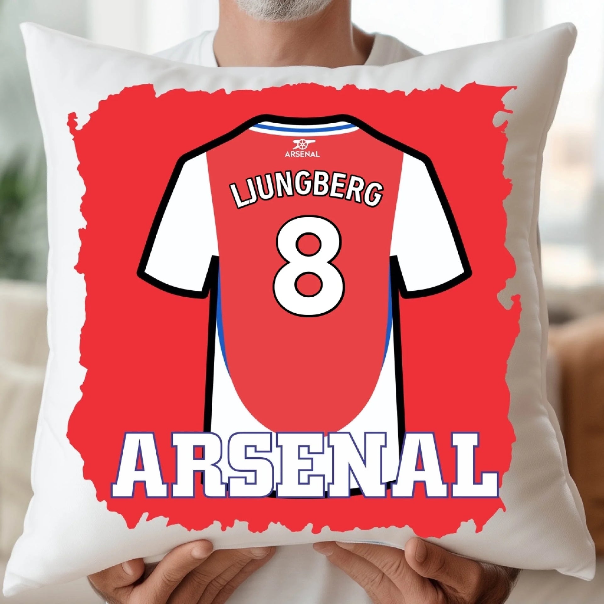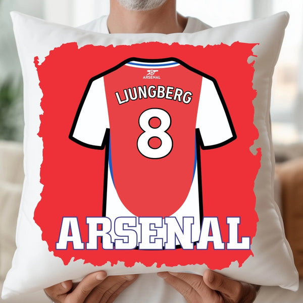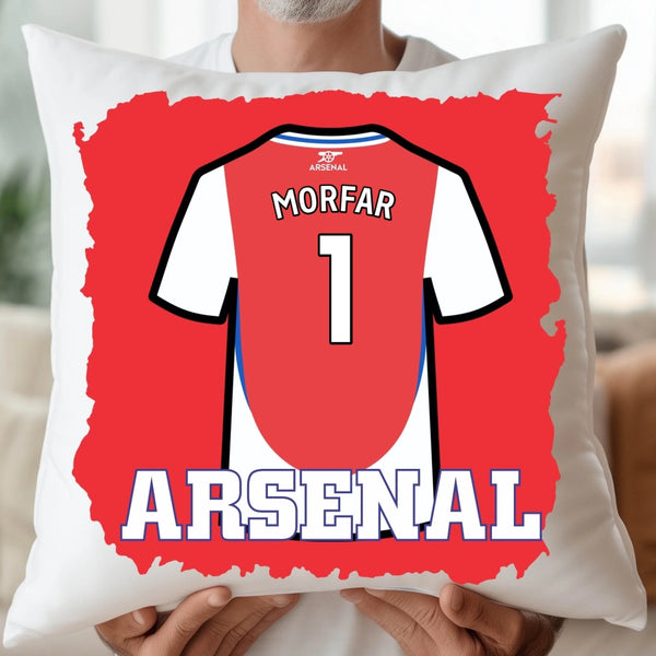 Visa din stolthet för The Gunners med vårt exklusiva Arsenal-inspirerade kuddfodral. Du kan välja att trycka en ikonisk spelares namn och nummer, eller göra det helt unikt med ditt eget – perfekt som present till en sann Arsenal-supporter, för milstolpsfödelsedagar eller med en personlig touch som PAPPA 1.