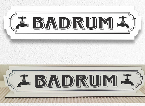 Skapa en mysig och personlig känsla i ditt hem med denna stilrena badrumsskylt! Tillverkad av 3 mm tjock MDF, laserutskuren med en elegant svart bakgrund och tydlig vit text – perfekt för att ge ditt badrum en tidlös touch.