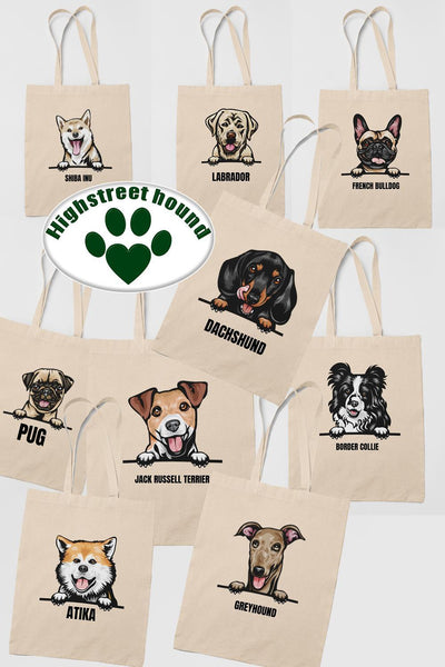 Hund tygkasse Shopping väska av stadig och bra kvalitet.  Mycket rymlig och slittålig, håller för tunga varor. Spara på miljön och bär hem det du handlar i denna fina väska istället för i plast/papperskassar!   Storlek: 39 x 41cm 100...läs mer