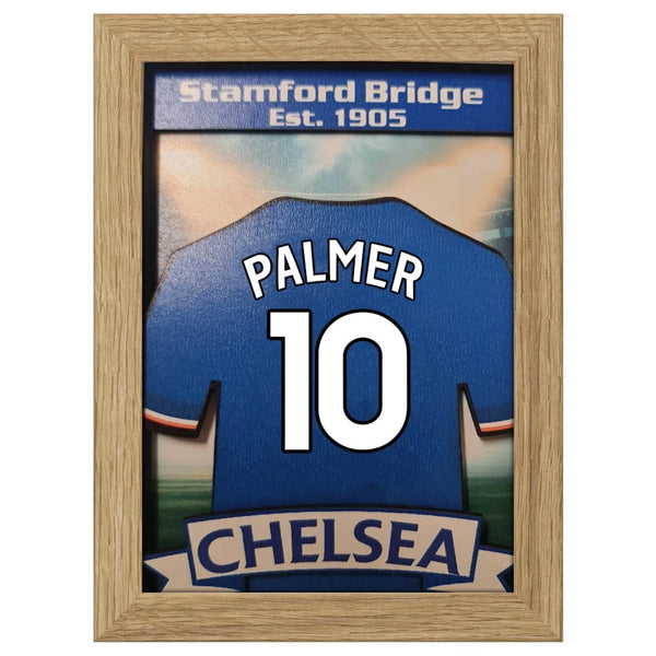 | Available Product | Chelsea 3D-tröjram Personlig present till Blues-fans | Anpassat namn och nummer | Stamford Bridge Stadium Display | Cole Palmer Ditt namn |