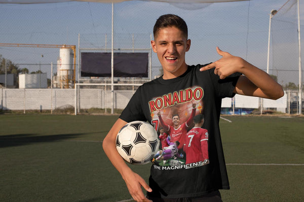 Denna Svart 100% bomull T-tröja med Ronaldo tryck på framsidan.