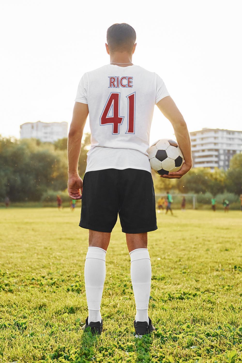 100% Polyester super mjuk fotbollströja stil . Full färg tryck fram & bak.| Model | XXL, Medium, Large, 158cl 12-13 år, XL, 120 cl 5-6 år, 130 cl 7-8år, 140cl 9-11 år, Small |