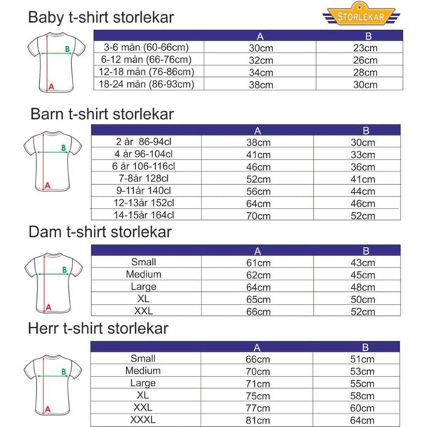 Storleks guide finns med bildar.