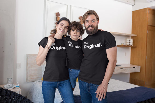Pappa, Mamma, Son & Dotter T-shirtar i svart med The original eller The REmix tryck