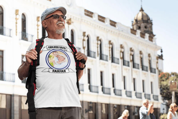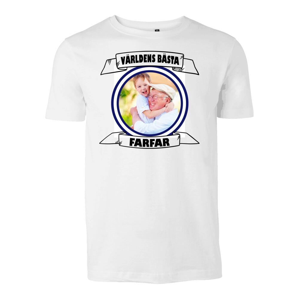 T-shirt med eget foto som du lätt laddar upp från din dator, mobiltelefon, ipad osv. Du kan sedan se hur t-shirten ser ut med din egen bild i vår förhandsgranskning. Perfekt present till farfar!