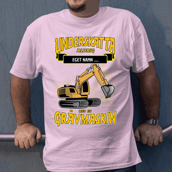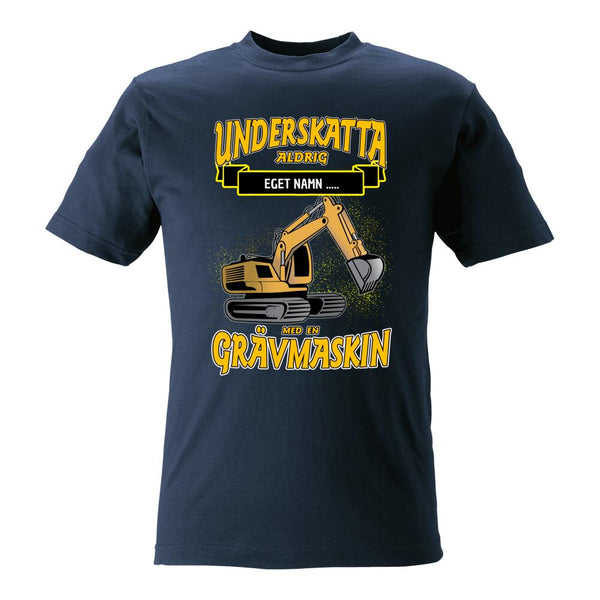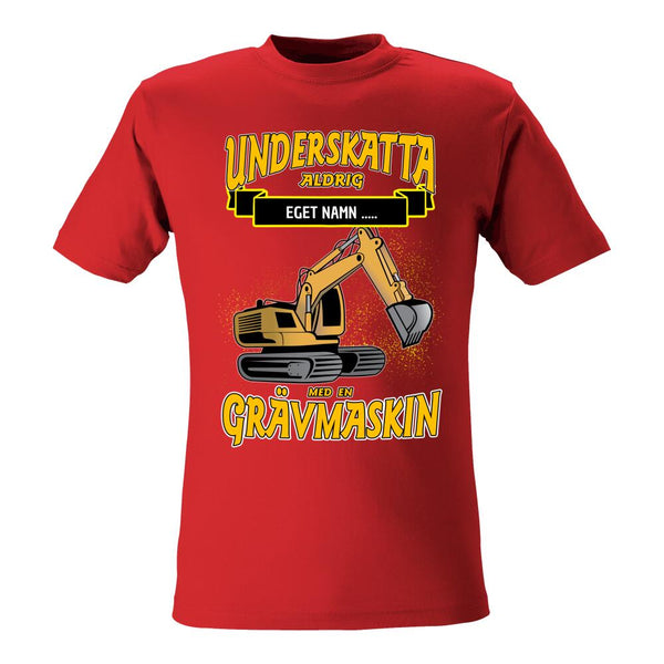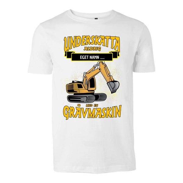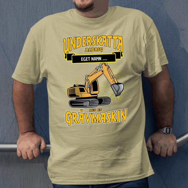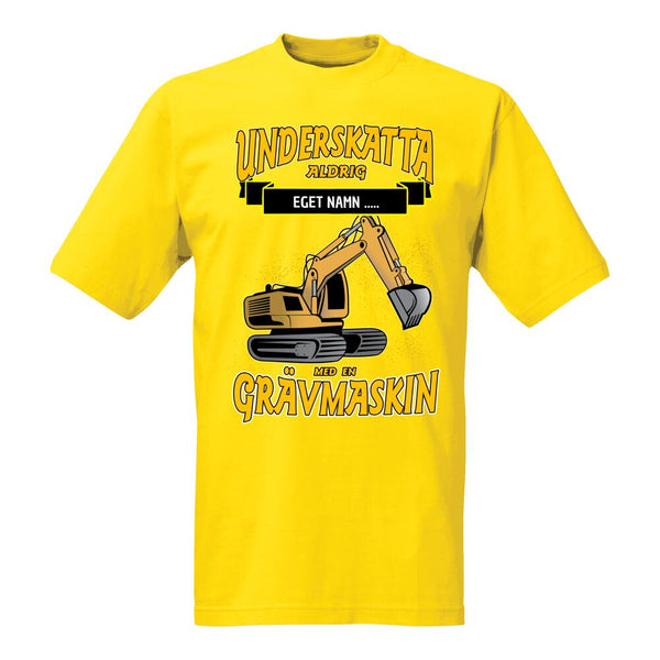 T-shirt med grävmaskin motiv som du gör högst personlig med eget val av namntryck. FInns dessutom i en mängd färger och om du har svårt att välja, varför inte köpa mer än en.....Perfekt gåva till den som kör grävmaskin, antingen på jobbet eller privat!