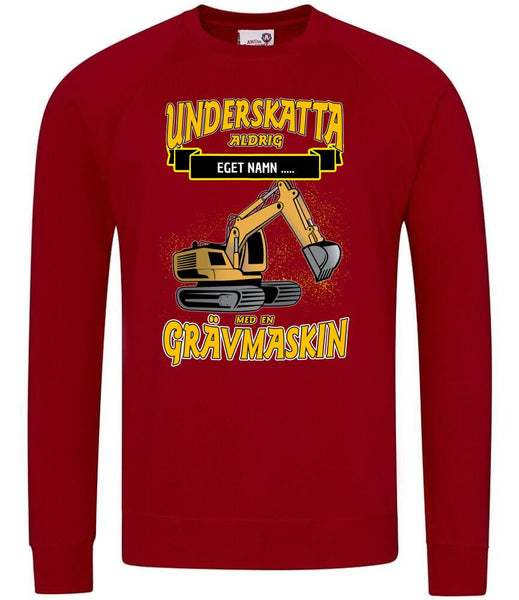T-shirt eller sweatshirt med grävmaskin tryck och personligt namn