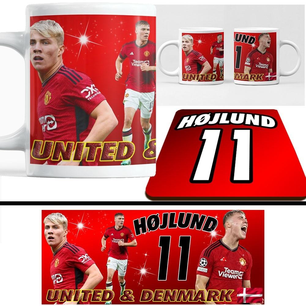 Højlund mugg + underlägg paket - United & Danmark spelare