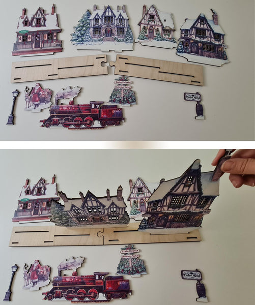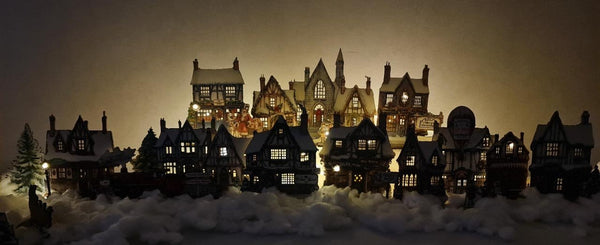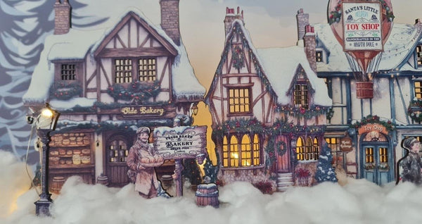 Varje fönster är exakt utskuret, vilket gör det enkelt att placera dina egna LED-lampor bakom byn och få den att lysa upp med julglädje. Oavsett om du älskar det charmiga Tudor-hotellet, leksaksbutiken med en hetluftsballong, eller den pittoreska Hollybrook-kyrkan, så kommer denna by att skapa en magisk julscen.