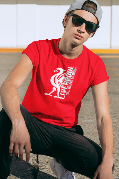 Visa din Liverpool-stolthet med denna premium-tröja i bomull, designad för riktiga Reds-supportrar som lever och andas LFC-fotboll klub. Oavsett om du hejar på Anfield, sjunger "You'll Never Walk Alone" på puben eller representerar Liverpool FC på gatorna, låter denna högkvalitativa, ultrabekväma t-shirt dig bära din passion med stolthet.