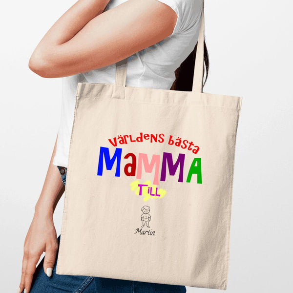 Tygkasse med Världens bästa mamma tryck - personligt tryck med eget val av barnens namn