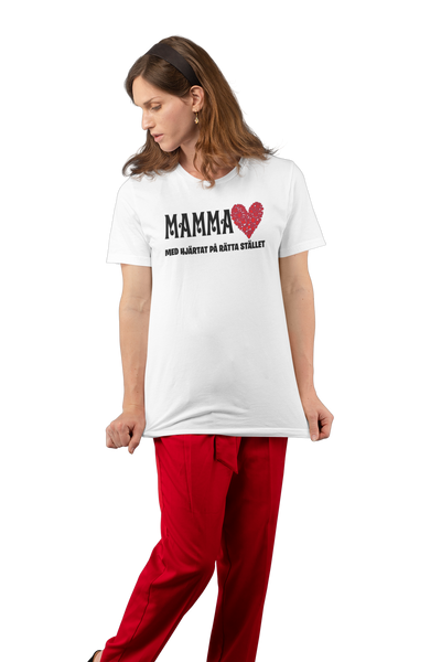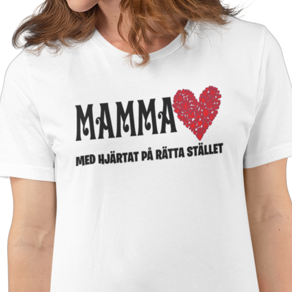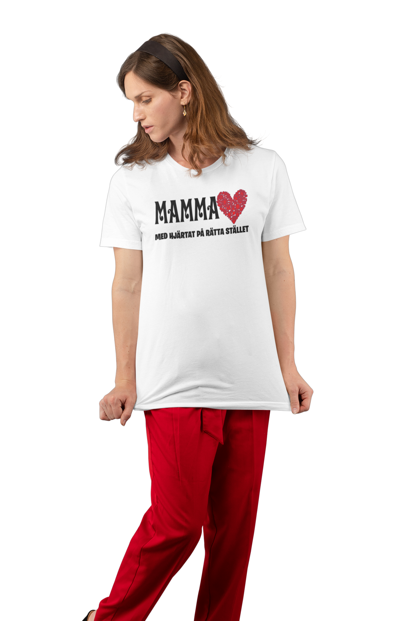 Vit unisex t-shirt – "Mamma, med hjärtat på rätta stället"