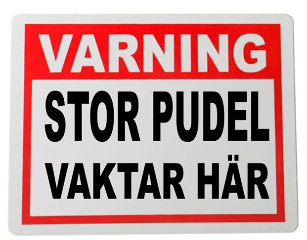 Metall varning plåtskylt - Varning ! Stor pudel vaktar här
