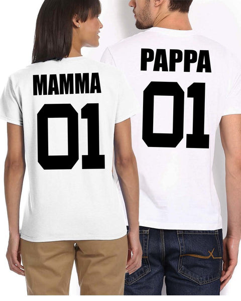 Vit T-shirt med tryck bak - PAPPA 01 eller MAMMA 01