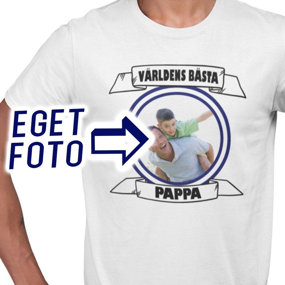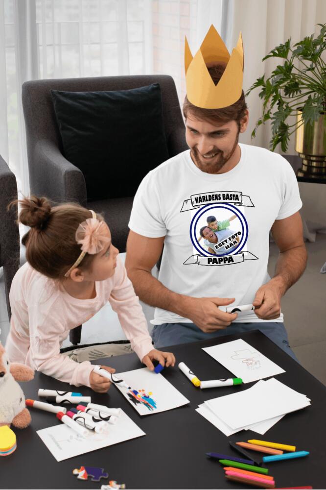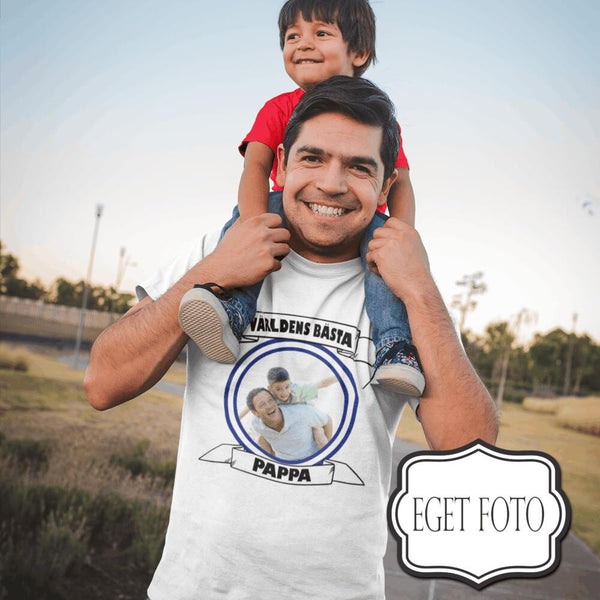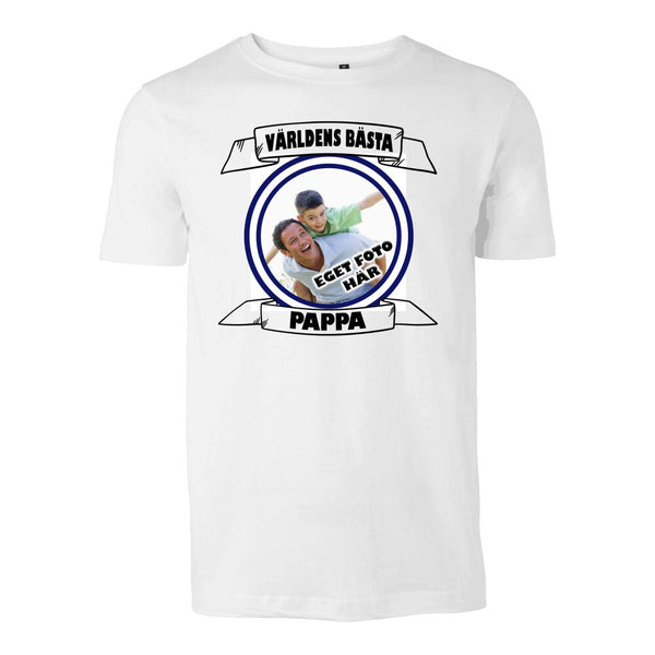 T-shirt med texten "Världens bästa Pappa" och anpassningsbart fotoområde.