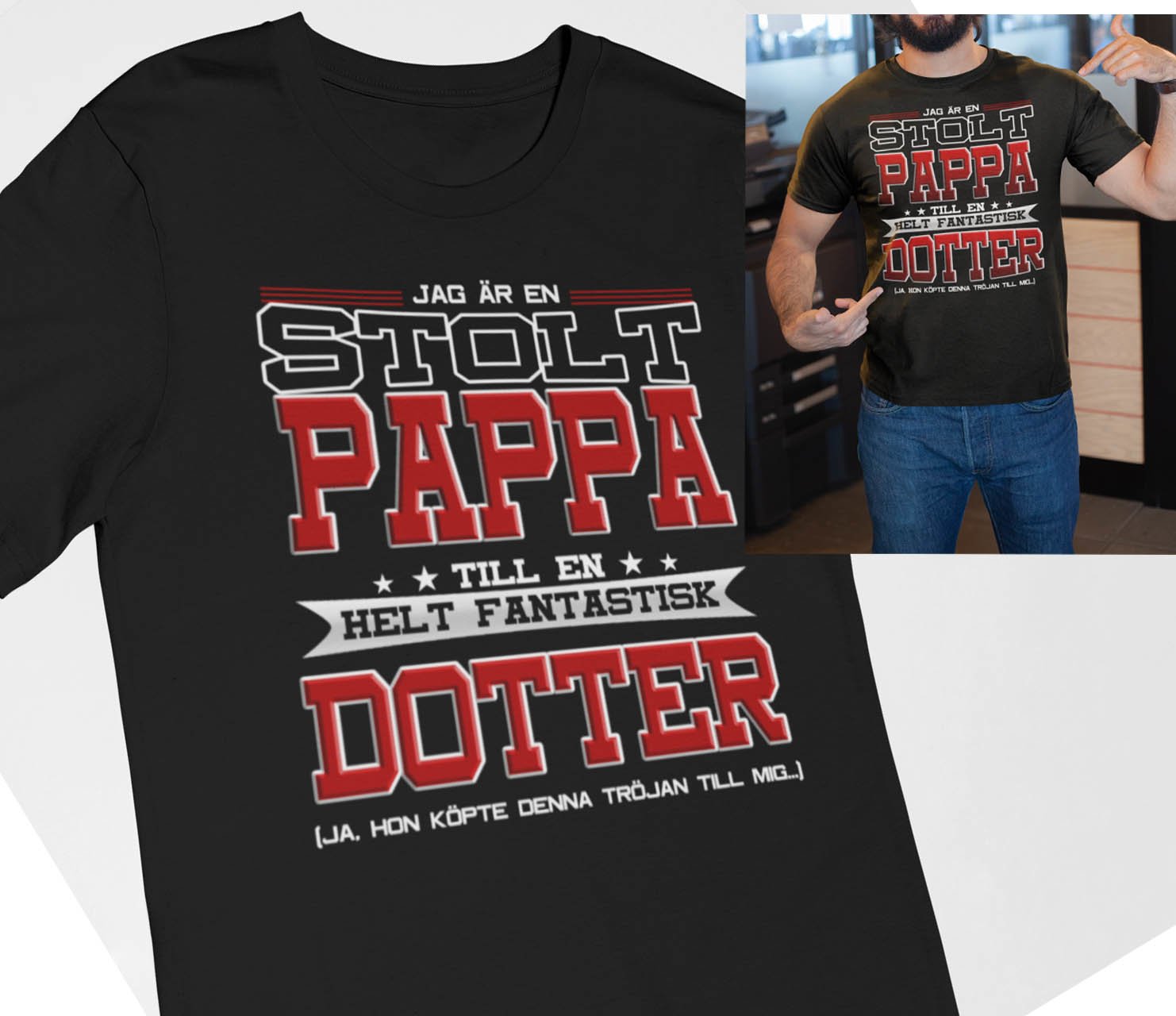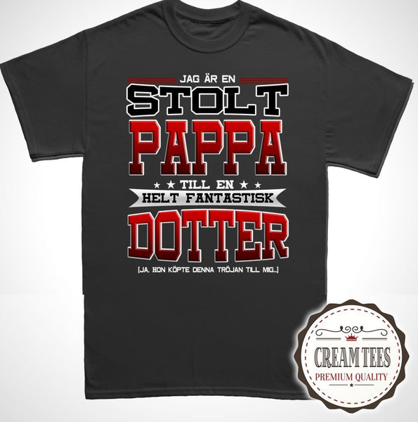 Svart Pappa t-shirt med text : Stolt Pappa med en fatatisk dotter - Ja, hon köpa denna tröjan till mig