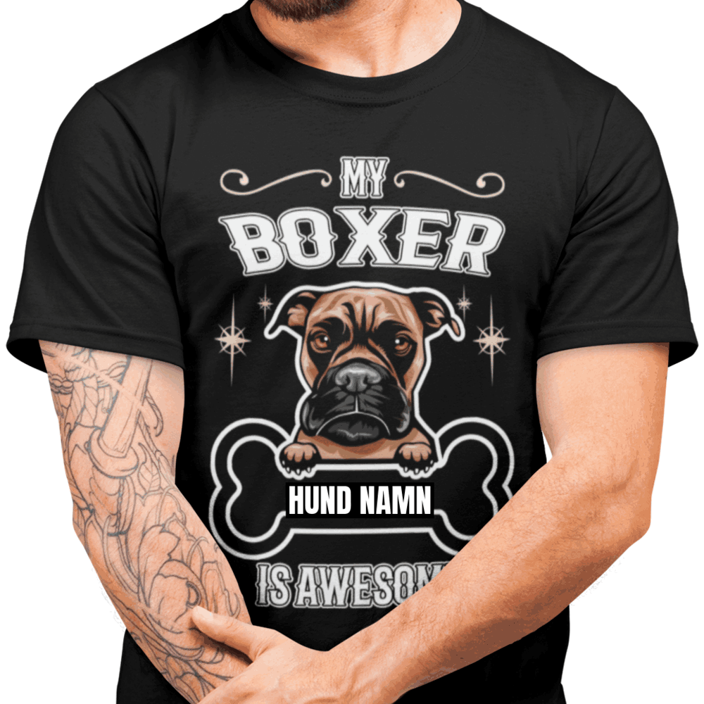 Ge din kärlek till din fyrbenta vän en plats på vår Personliga Hund T-shirt. Denna T-shirt erbjuder dig möjligheten att anpassa den med din egen hundras och hundens namn, vilket gör den till en unik och personlig produkt.