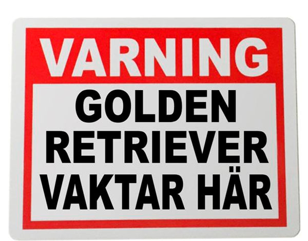 Metall varning plåtskylt - Varning ! Golden retriever vaktar här