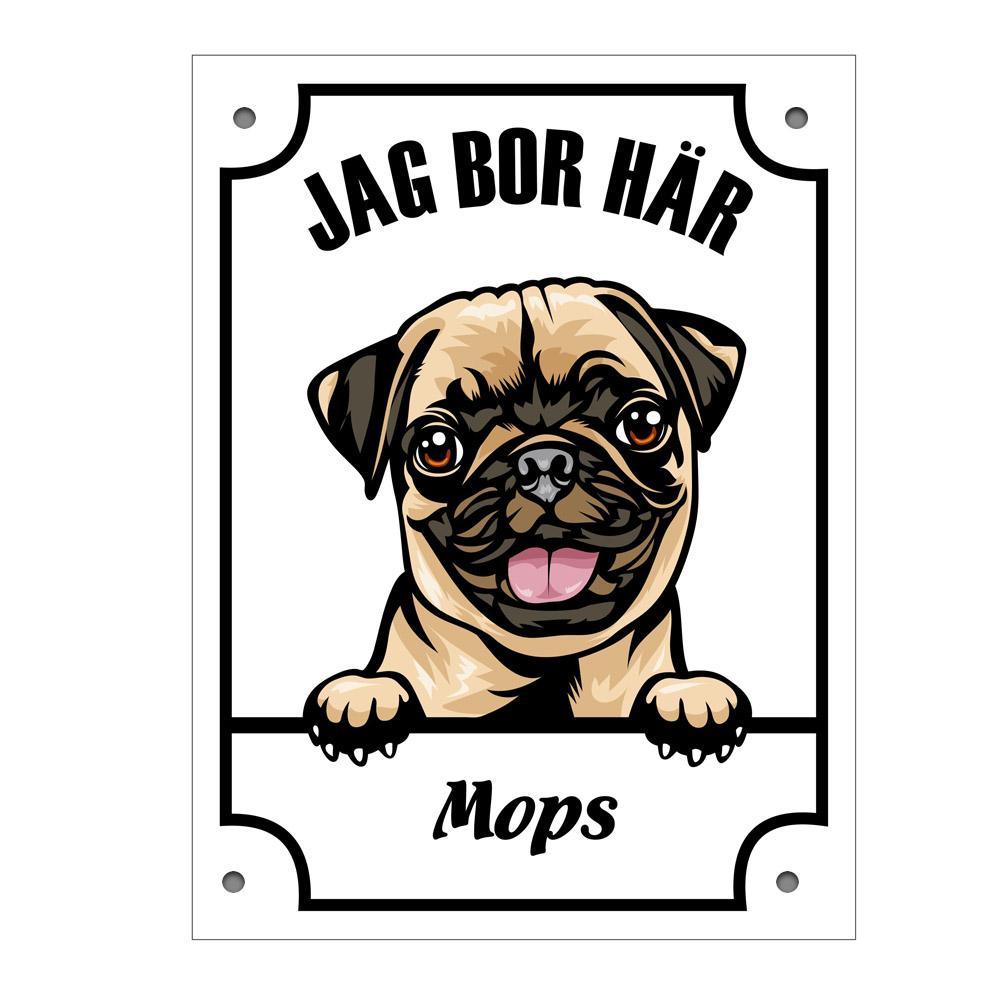 Mops - Kikande hund skylt i metal