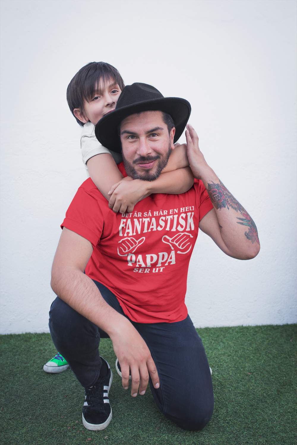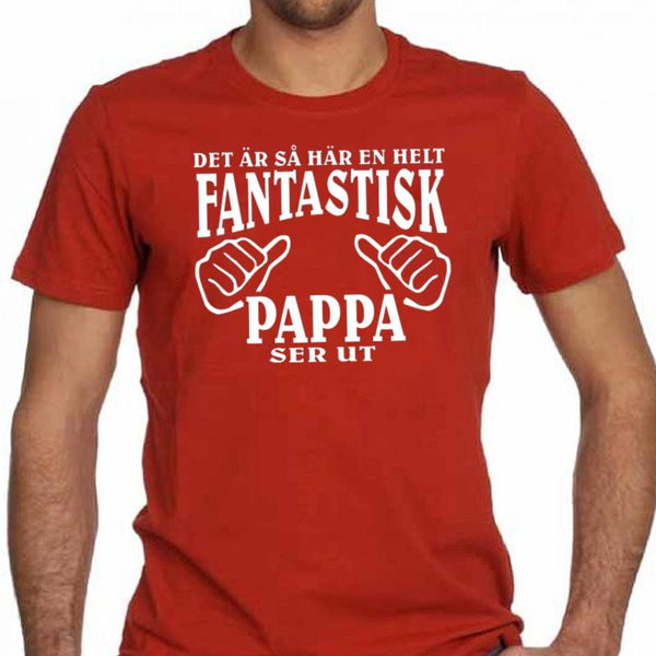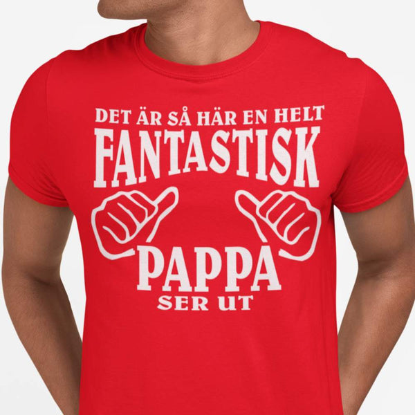 Röd T-shirt med text : Det är så här en helt fantastisk Pappa ser ut