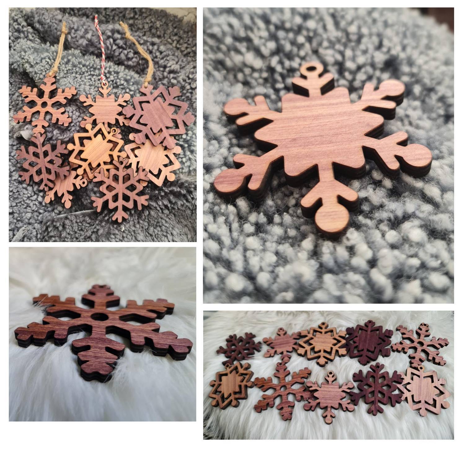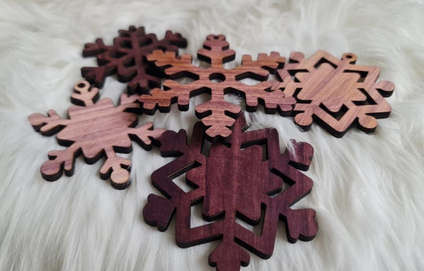 Snöflingorna är generöst tilltagna i storlek, där den minsta mäter 81 x 73 mm och den största 100 x 91 mm. (Storlekar: 3.2 x 2.87 tum till 3.93 x 3.58 tum). Varje snöflinga är tillverkad i 6 mm tjockt trä, vilket ger dem en robust känsla och lång hållbarhet – perfekt för att skapa en mysig, julig atmosfär år efter år.