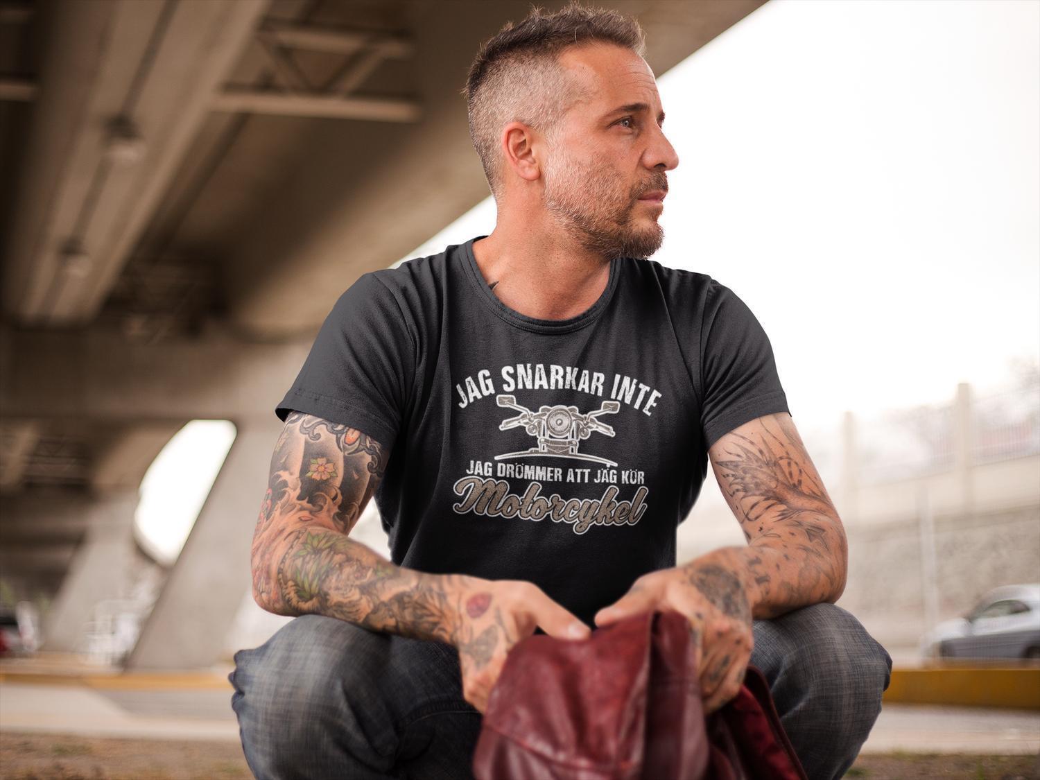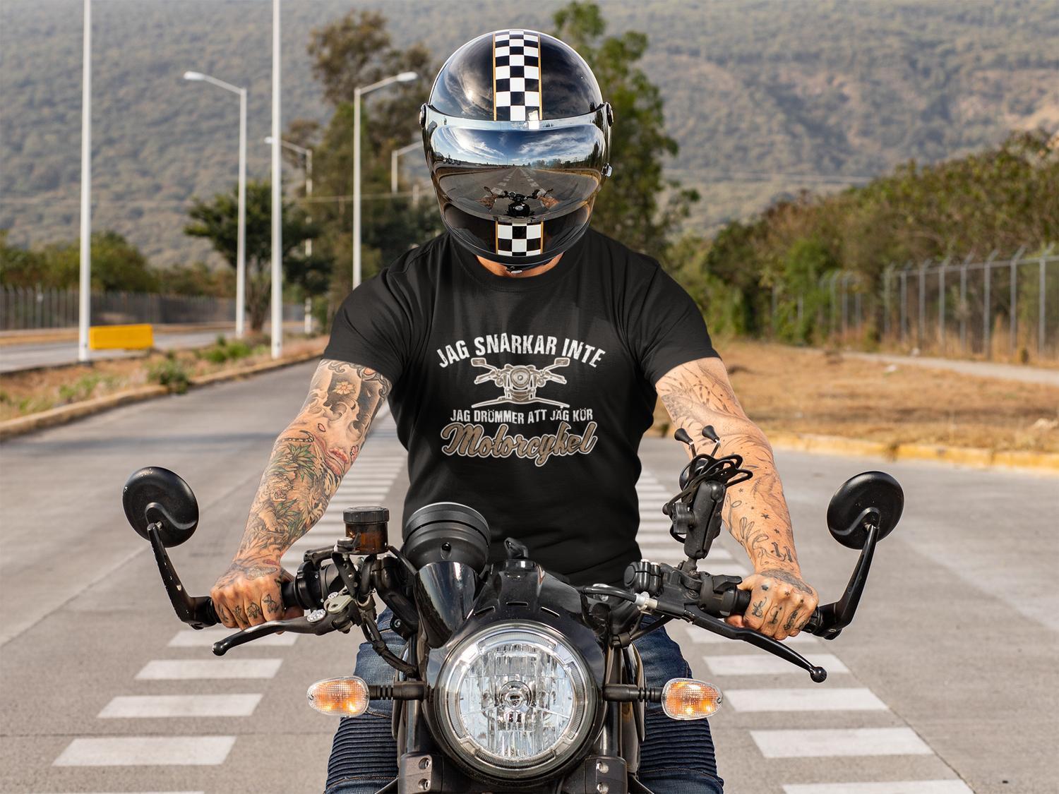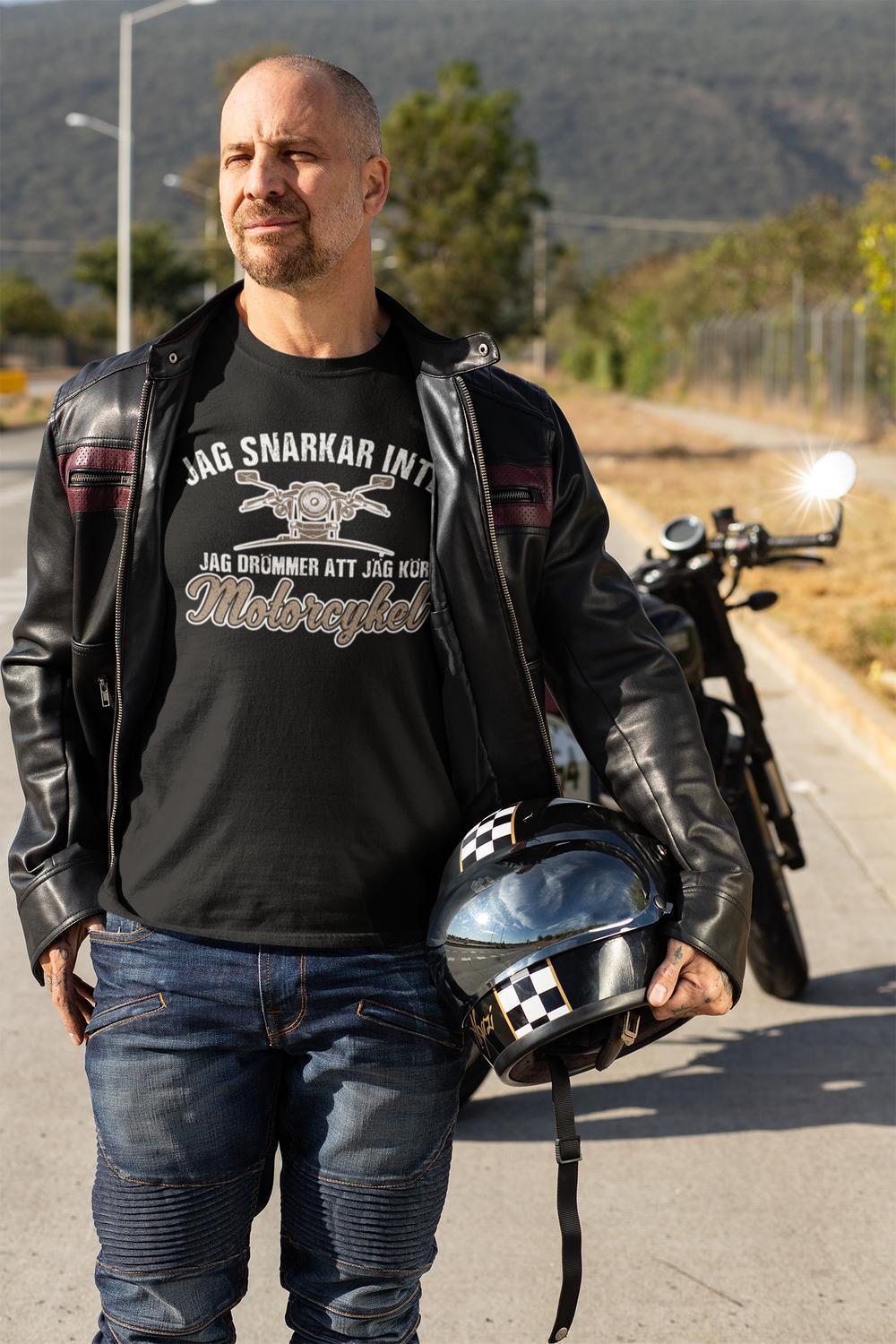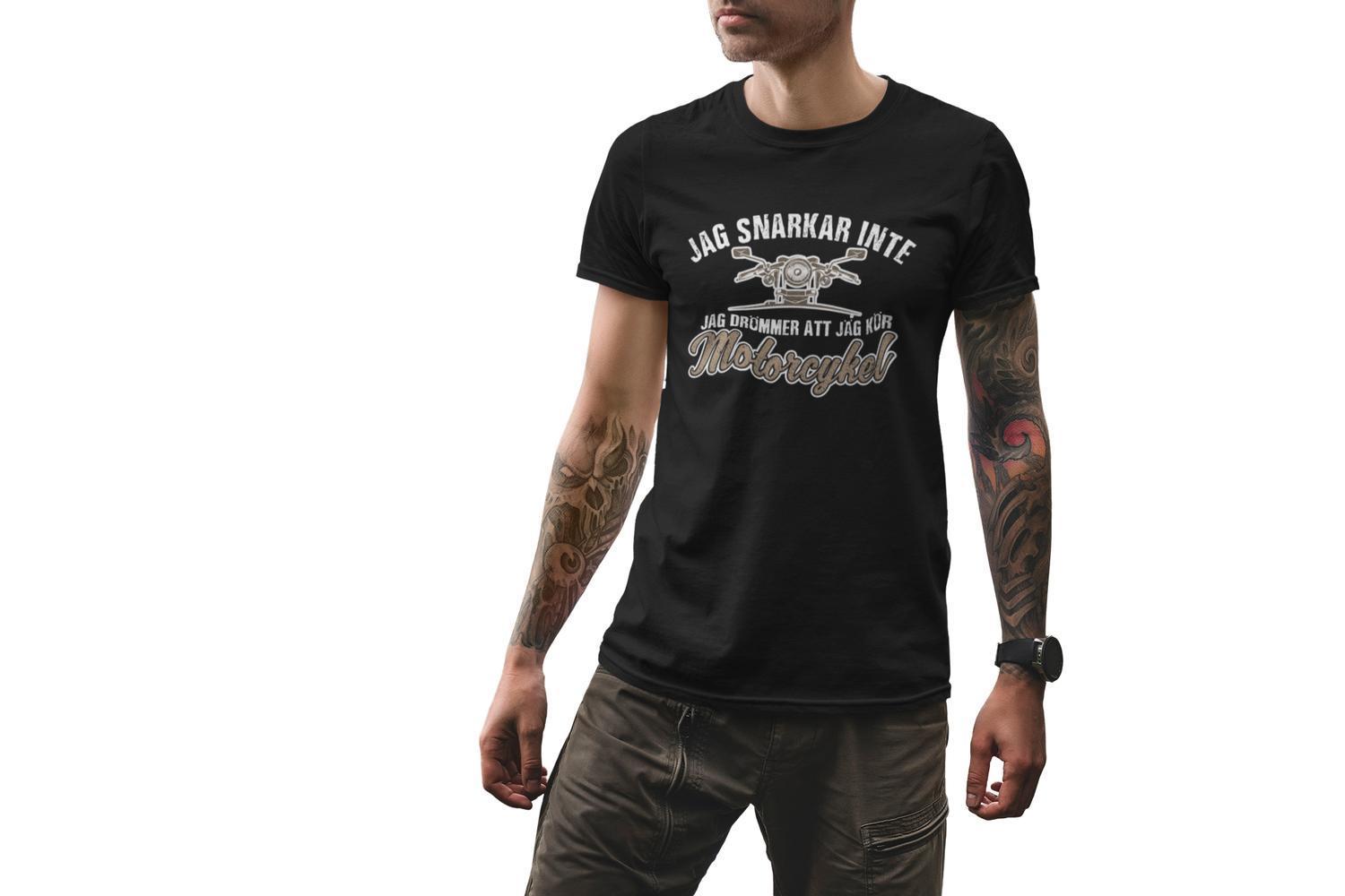 T-shirt med tryck : Jag snarkar inte jag drömmer att jag kör motorcykel