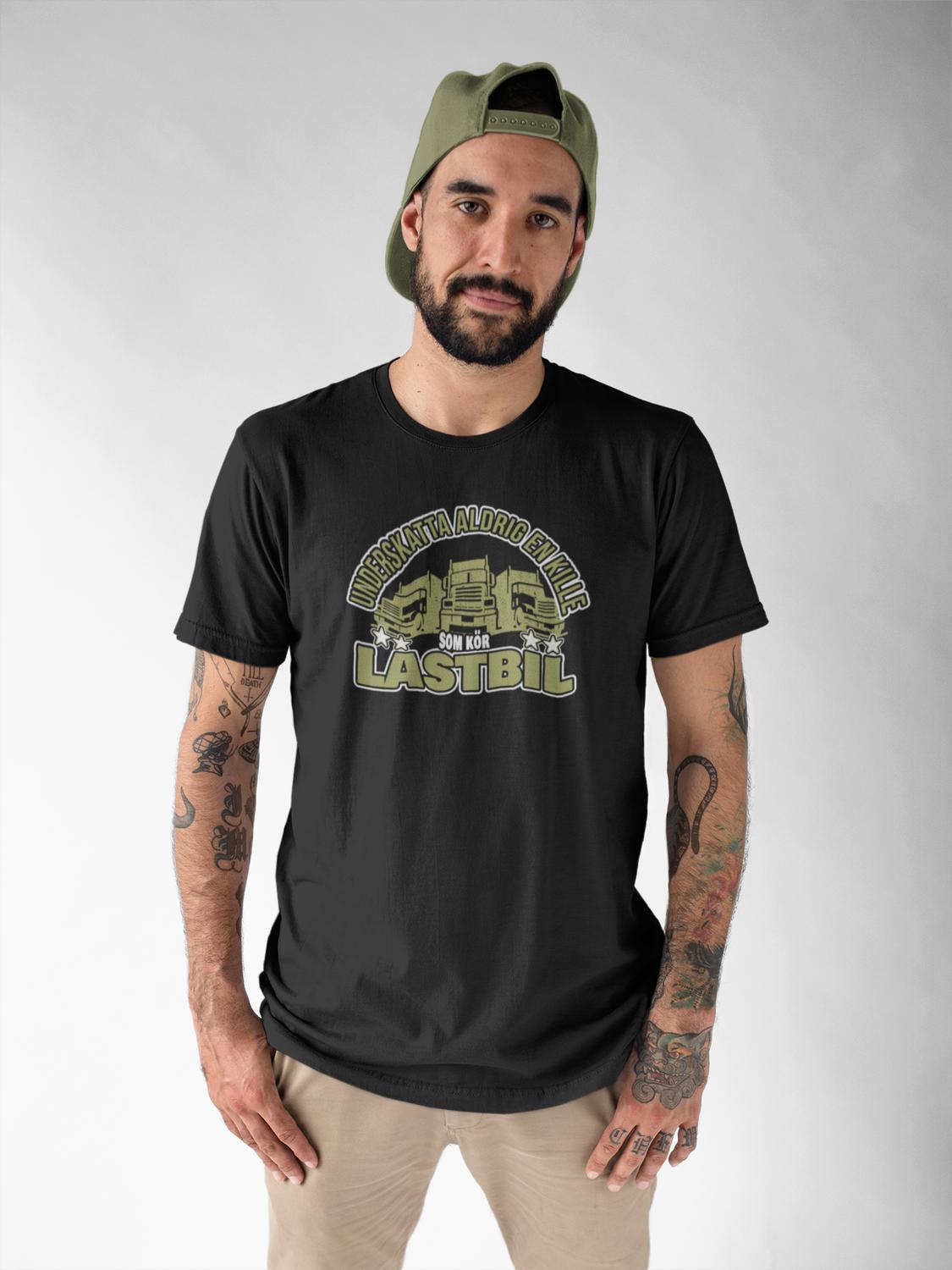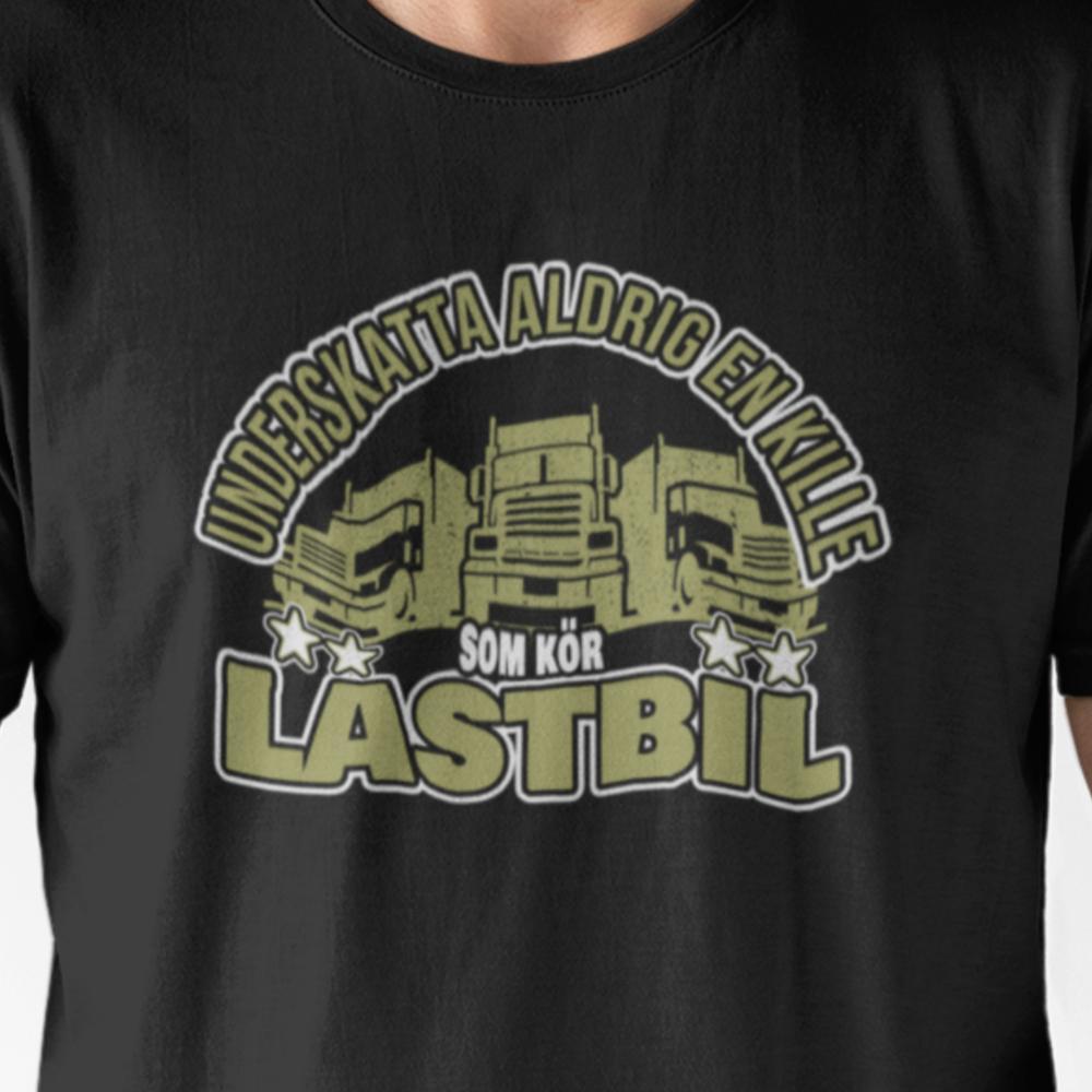 T-shirt med tryck :Underskatta aldrig en kille som kör lastbil