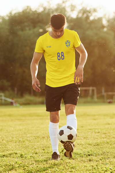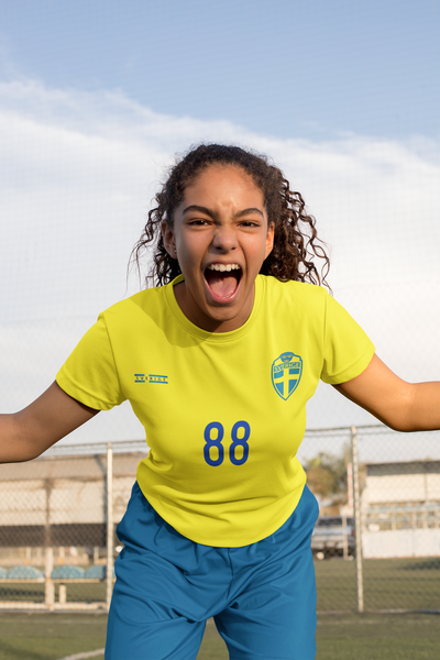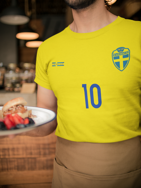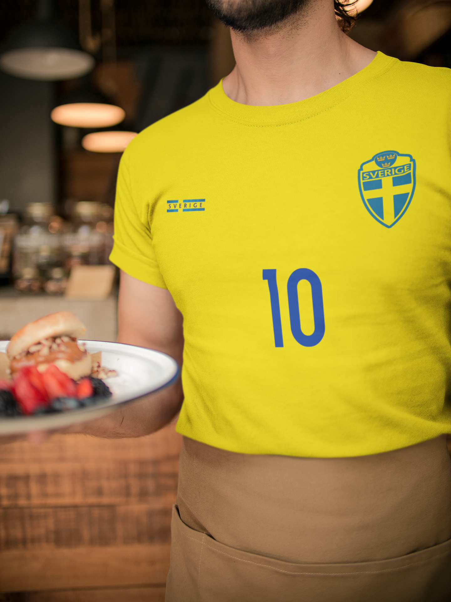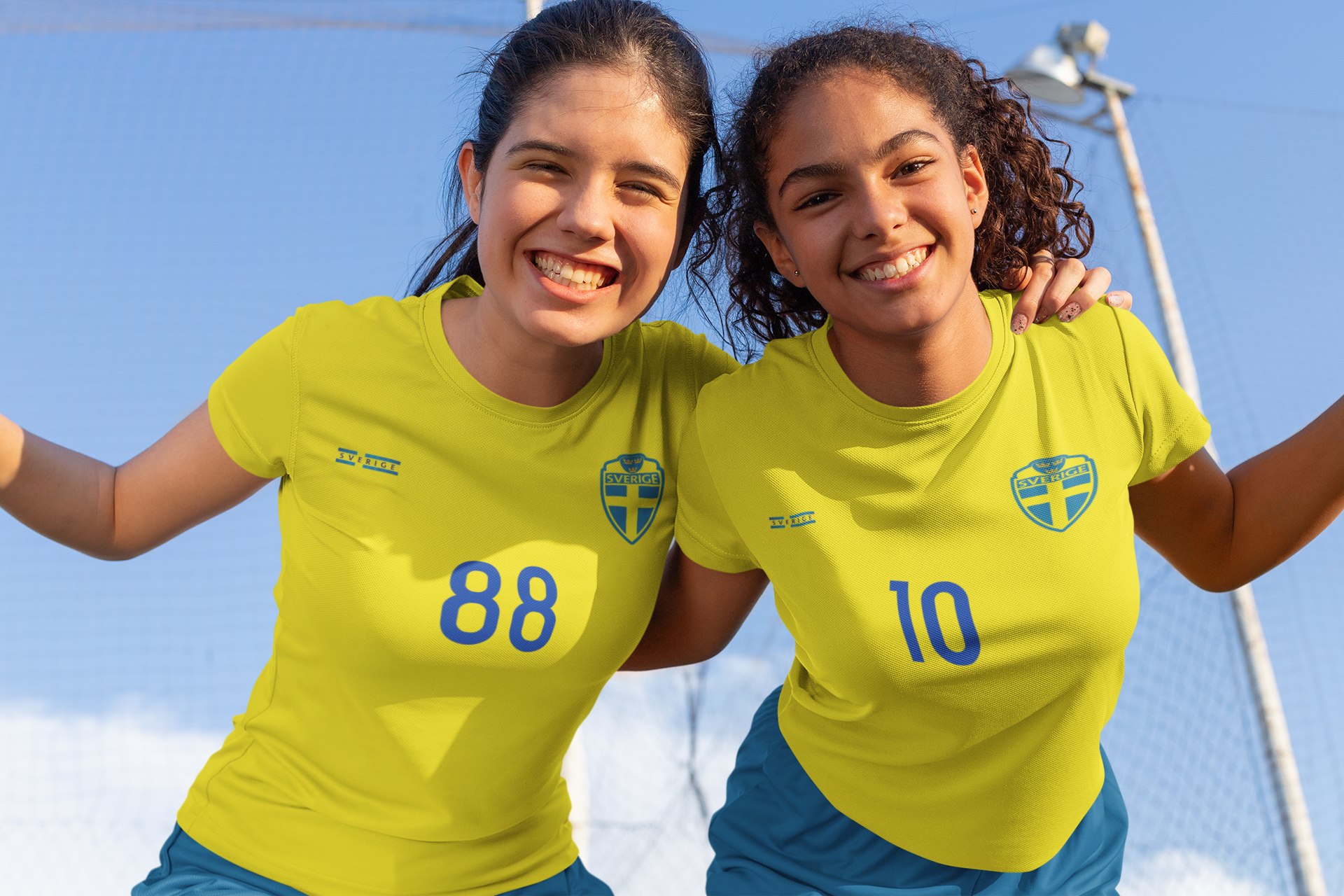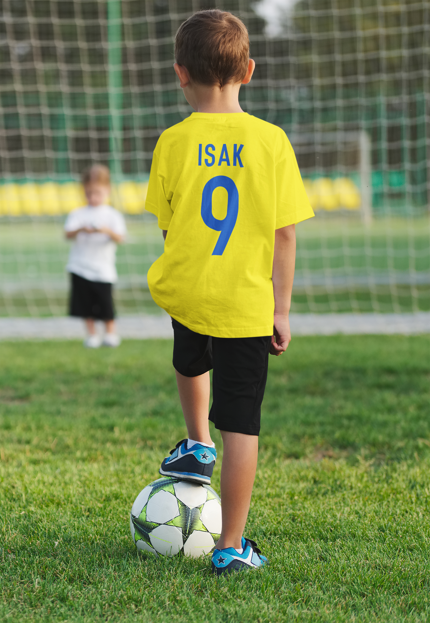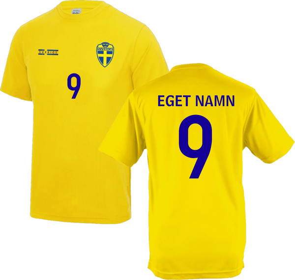 Sverige stil fotbollströja med logo & eget namn & nummer fram & bak !
