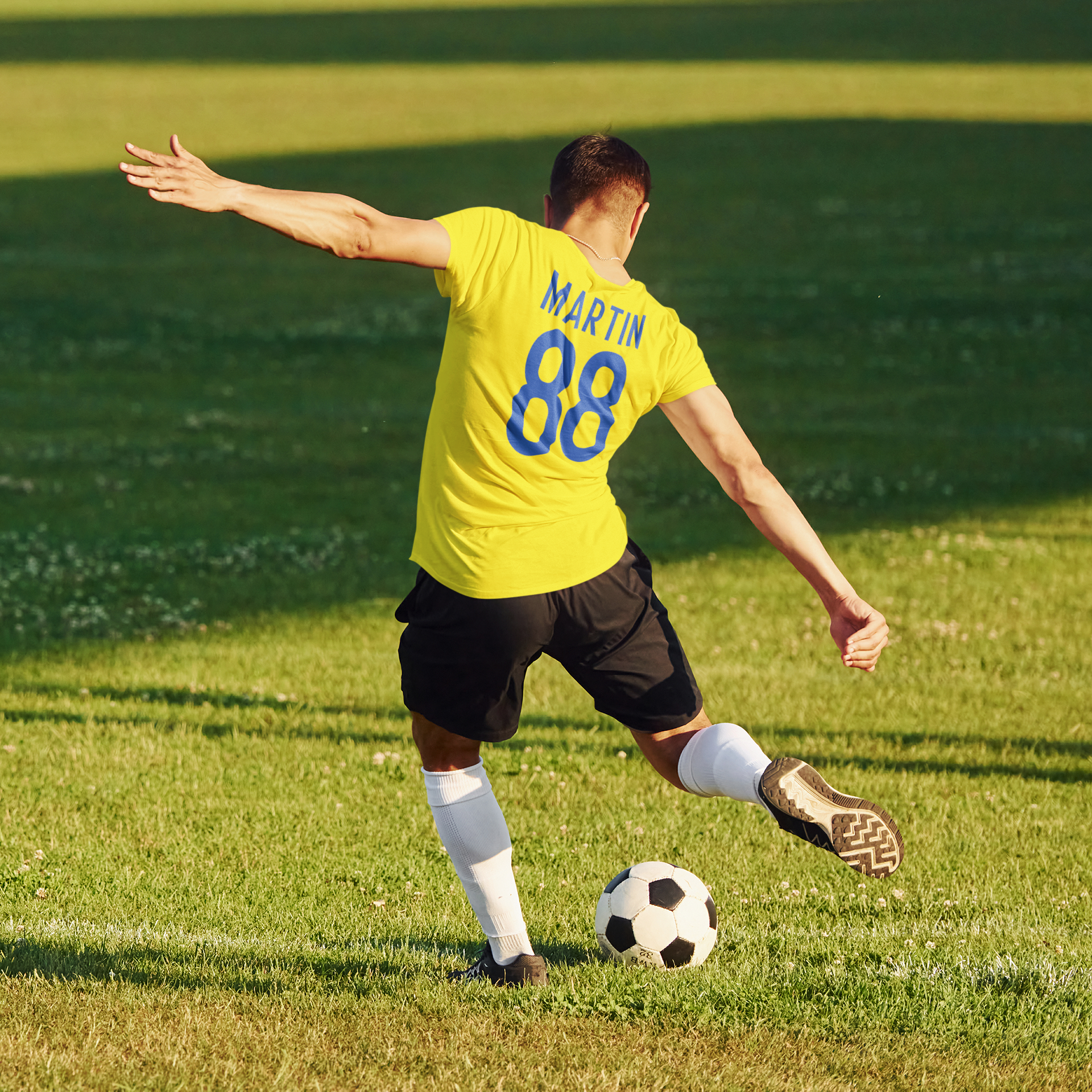 Vi presenterar den gula fotbollströjan i svensk stil i polyester, en livlig och anpassningsbar plagg som låter dig visa din kärlek till sporten samtidigt som du representerar din egen unika identitet. Den här tröjan är inspirerad av det ikoniska svenska landslaget och erbjuder en personlig touch som skiljer den åt. Den här skjortan är tillverkad av högkvalitativt polyestertyg och garanterar överlägsen komfort och hållbarhet, vilket gör den lämplig för både på och utanför planen. Den iögonfallande gula färgen hyllar det svenska landslagets traditionella färger och framkallar en känsla av nationell stolthet och idrottsarv. Det som gör denna skjorta verkligen speciell är dess anpassningsfunktion. Du har möjlighet att göra den personlig genom att lägga till ditt eget namn och nummer på baksidan av tröjan. Detta gör att du stolt kan visa din identitet och verkligen göra skjortan till din egen. Dessutom kommer samma nummer att läggas till framtill på tröjan, precis som spelarna bär på sina tröjor. Genom att anpassa tröjan med ditt namn och nummer kan du efterlikna utseendet och känslan hos dina svenska favoritspelare och fördjupa dig i spelets anda. Oavsett om du deltar i en match, deltar i en vänskapsmatch eller bara visar upp ditt stöd, är denna personliga skjorta det perfekta valet. Gå med i raden av passionerade svenska fotbollsfans med denna gula fotbollströja i svensk stil i polyester. Fira nationens idrottsarv samtidigt som du omfamnar din egen individualitet. Teckensnittet som används i förhandsgranskningen är bara för dig att se layouten. Teckensnittet som används i vår programvara liknar det teckensnitt som används men inte exakt.