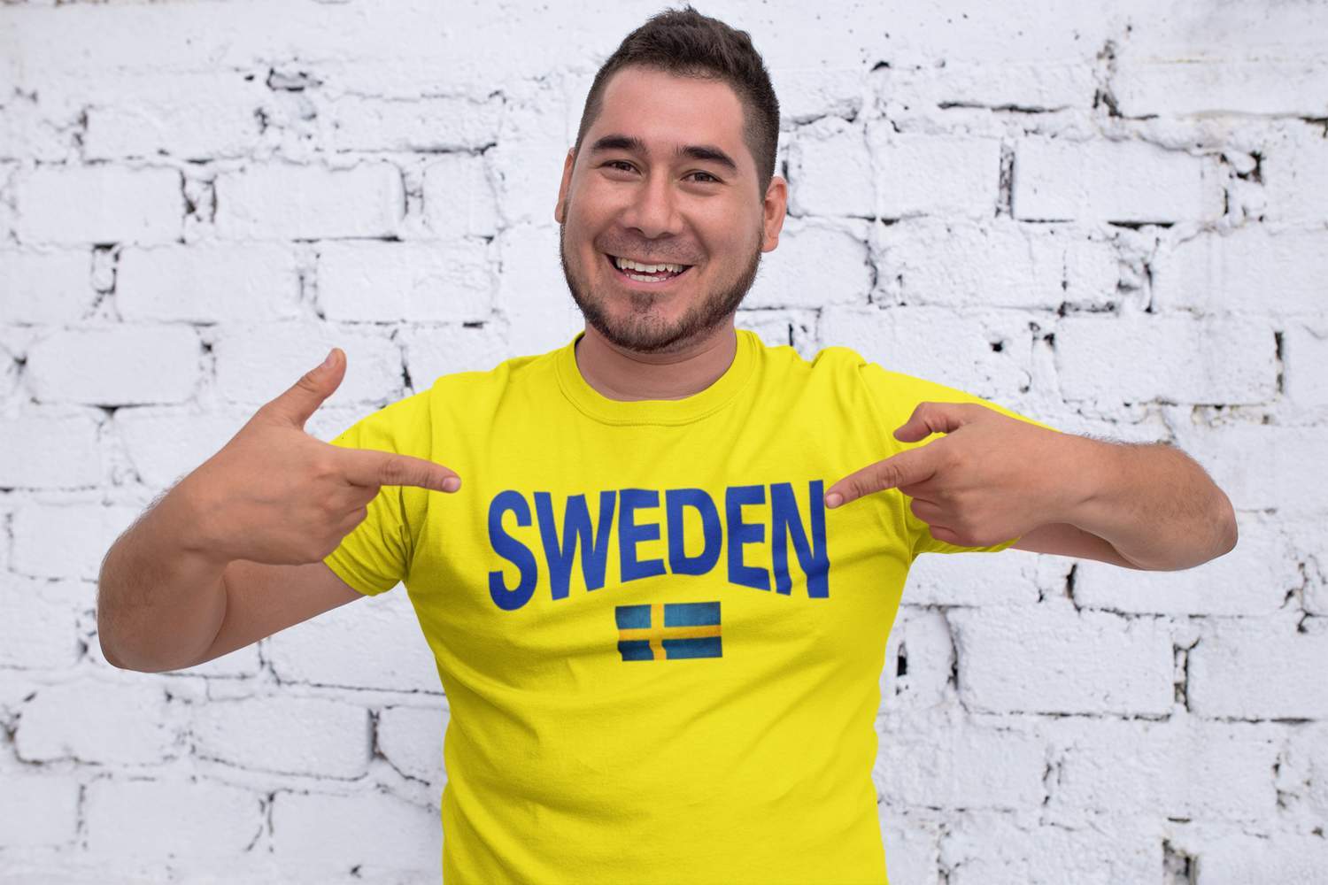 En kul t-shirt med texten "SWEDEN" & svenska flaggan.