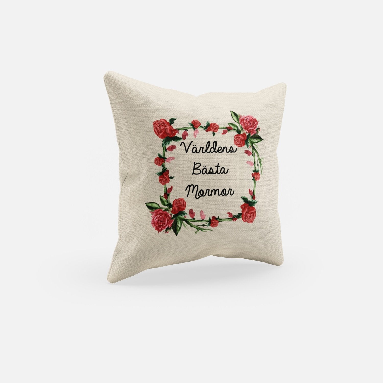 Världens bästa Mormor Kuddfodral Linen look Kuddeöverdrag
