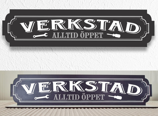 Skapa en mysig och personlig känsla i ditt hem med denna stilrena Verkstadskylt - Till garaget ! Tillverkad av 3 mm tjock MDF, laserutskuren med en elegant svart bakgrund och tydlig vit text – perfekt för att ge ditt Garage / Verkstad en tidlös touch.